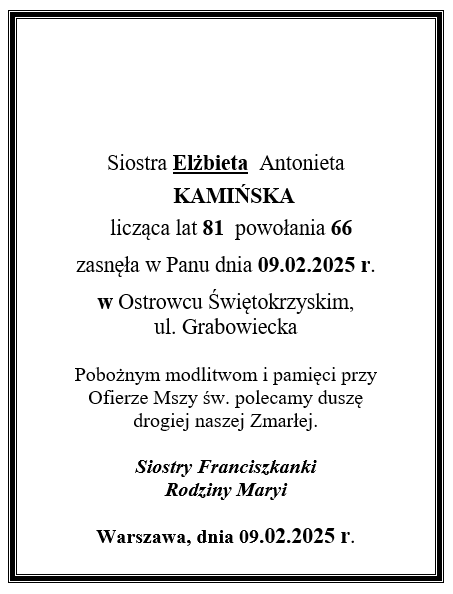 Zmarła s. Elżbieta Kamińska
